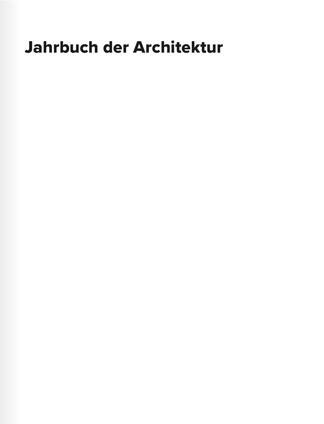 JahrbuchAls Standardwerk zur aktuellen Baukultur im deutschsprachigen Raum präsentiert das »Jahrbuch der Architektur« ausgewählte Projekte aus Deutschland, Österreich und der Schweiz. In den Kapiteln »Wohnen«, »Arbeiten«, »Bildung« sowie »Kultur & Infrastruktur« zeigen herausragende Bauten, wie Architektur auf die ökologischen, sozialen und funktionalen Herausforderungen unserer Zeit reagiert.